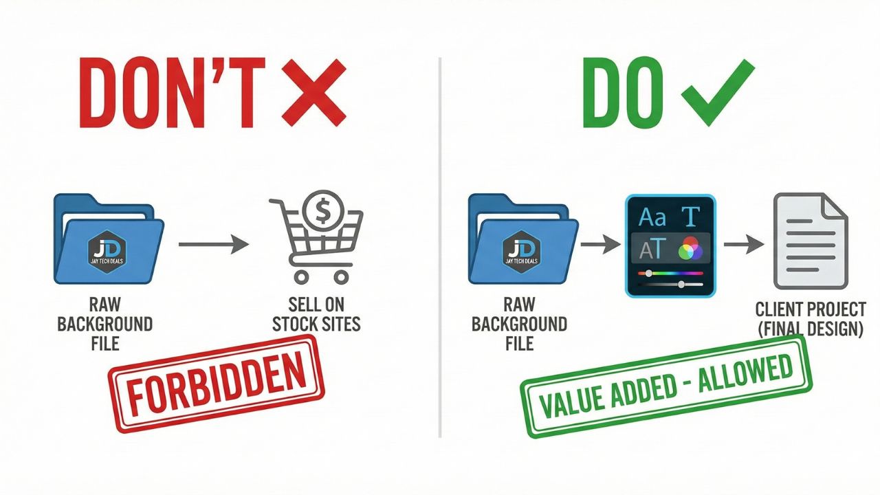 The “Value Add” Rule: You cannot simply take the background, do nothing to it, and sell it. You must add value.
